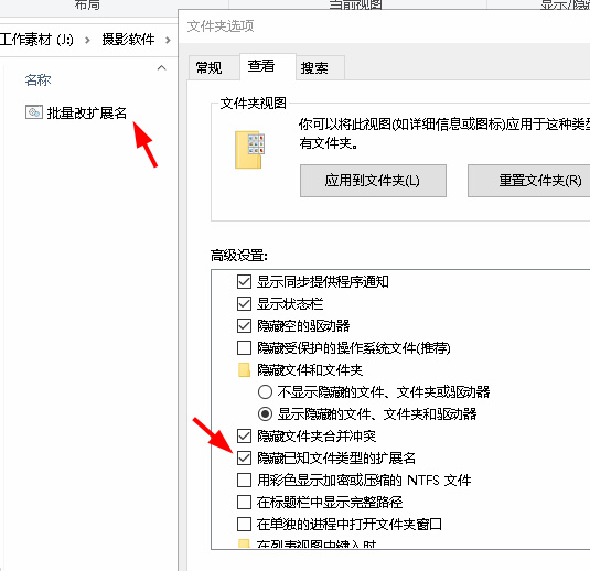 下图为开启状态,这时候你是看不到文件扩展名的。