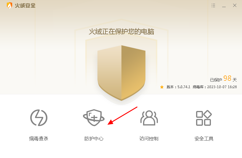 1.安装完毕后,点击防护中心。