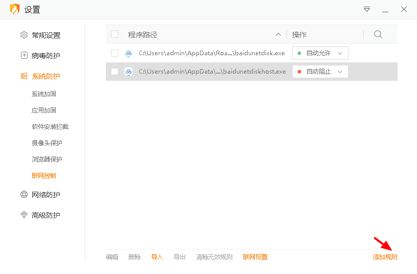 这是最快速最简单的联网控制方案,只需要下载火绒,然后手动打开联网控制功能,再做点设置即可。