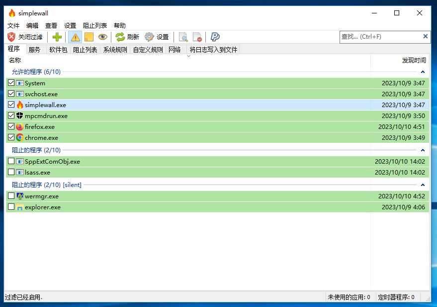 SimpleWall Windows Filtering Platform 杀毒软件 浏览器 火绒 防火墙