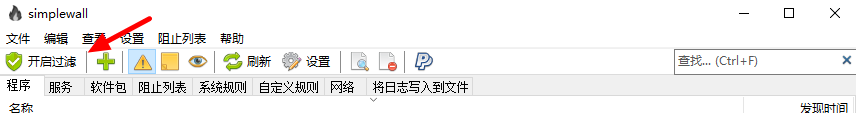 其次,第一次安装时候,默认是不开启过滤的,首先我们先点击箭头所指的【开启过滤】。