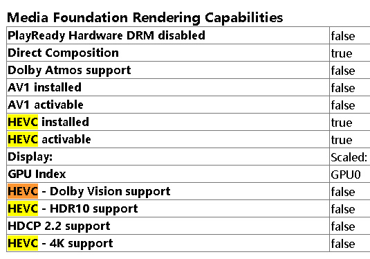 4.如果HEVC installed 和 HEVC activable 都是true ,既安装成功。